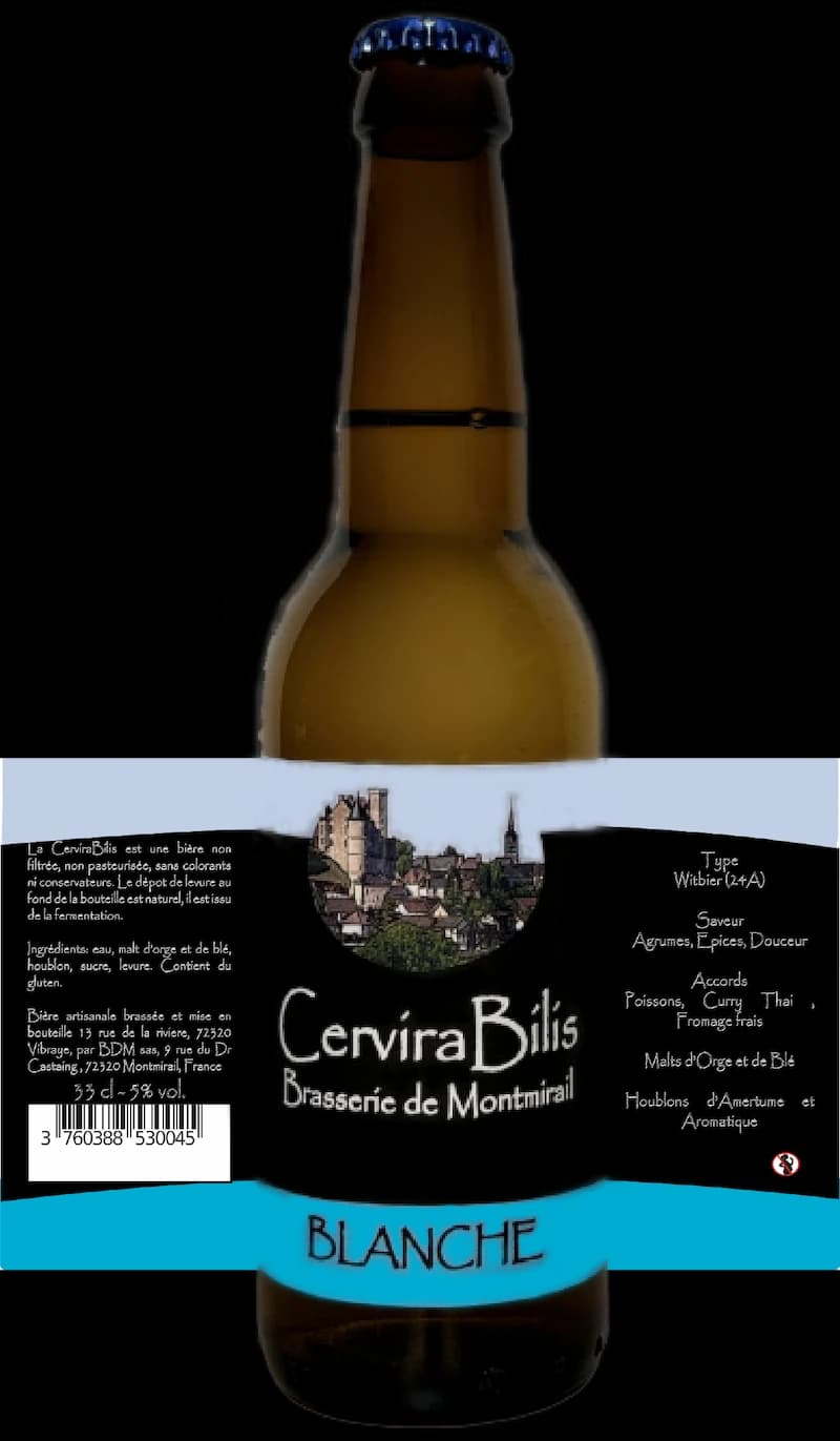 La CerviraBilis Blanche est une bière au malt de blé et d'orge avec des notes d'agrumes, de gingembre et de coriandre. Faiblement houblonnée, elle est très désaltérante. Alc. 5% /vol.
